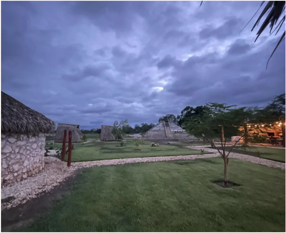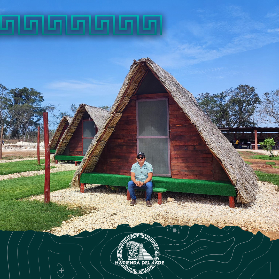 Hacienda del Jade es una eco-hacienda boutique situada a solo 700 m de la Zona Arqueológica de Edzná. Aquí puedes dormir en chozas mayas, descansar en una pirámide moderna o acampar bajo el cielo estrellado, mientras te conectas con la naturaleza y la historia viva de Campeche.