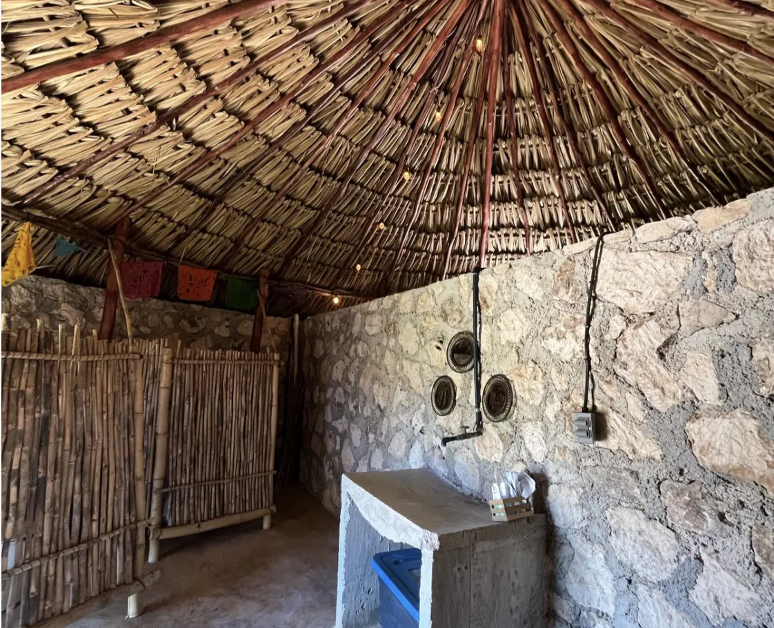 Alojamiento tradicional inspirado en la arquitectura maya, con espacios frescos, privacidad y ambiente natural.