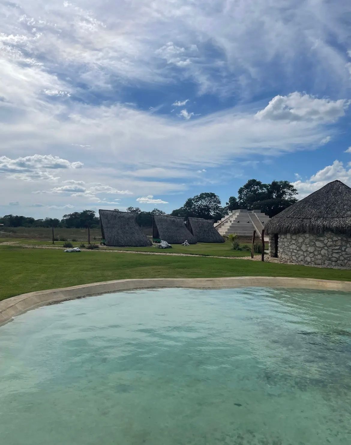 Hacienda del Jade es una eco-hacienda boutique situada a solo 700 m de la Zona Arqueológica de Edzná. Aquí puedes dormir en chozas mayas, descansar en una pirámide moderna o acampar bajo el cielo estrellado, mientras te conectas con la naturaleza y la historia viva de Campeche.